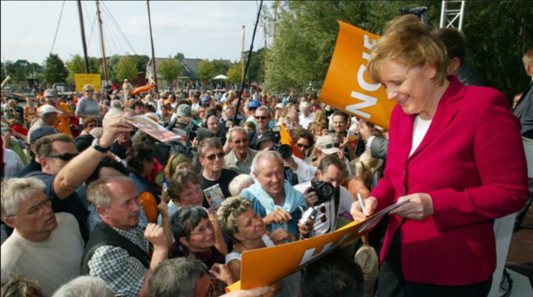 10 Σεπτεμβρίου 2005Η Μέρκελ υπογράφει αυτόγραφα, κατά τη διάρκεια προεκλογικής εκστρατείας στη βόρεια Γερμανία.