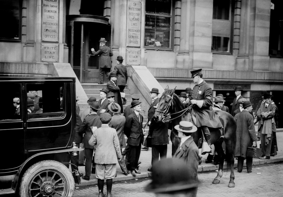 Άνθρωποι περιμένουν προκειμένου να μάθουν τα νέα έξω από τα γραφεία της ναυτιλιακής εταιρείας, White Star Line στη Νέα Υόρκη.