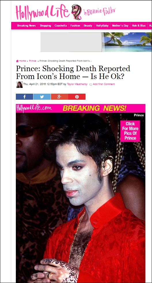 “Prince: Σοκαριστικός θάνατος στο σπίτι του σταρ – Είναι καλά;” είναι ο τίτλος του Hollywoodlife.