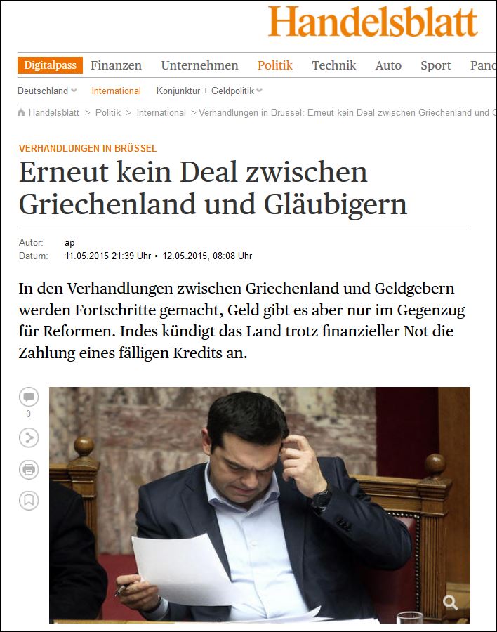 Η Handelsblatt από την πλευρά της υπογραμμίζει ότι αν και δεν υπήρξε χθες συμφωνία μεταξύ της Ελλάδας και των πιστωτών της, η Αθήνα θα μπορέσει να καταβάλει σήμερα μια δόση του δανείου που έχει λάβει από το Διεθνές Νομισματικό Ταμείο.