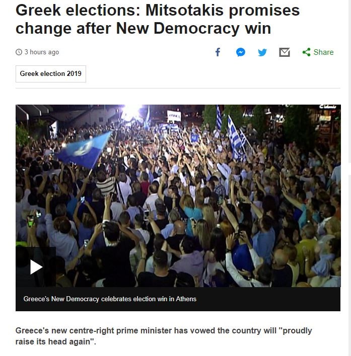 «Ο Μητσοτάκης υποσχέθηκε αλλαγή μετά τη νίκη της Νέας Δημοκρατίας», τιτλοφορείται το άρθρο του BBC για τις ελληνικές εκλογές.