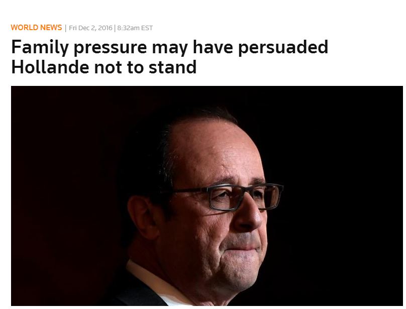 Σύμφωνα με έναν στενό του φίλο, τον δικηγόρο Jean-Pierre Mignard, οι αντιρρήσεις των παιδιών του και της μητέρας τους, υπουργού Ενέργειας Σεγκολέν Ρουαγιάλ, ενδεχομένως τον οδήγησαν σε αυτήν του την απόφαση.