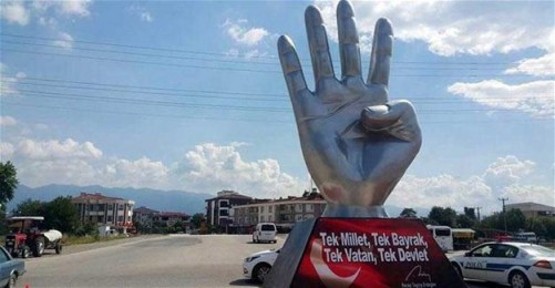 Σε πολλές δημόσιες εμφανίσεις του, ο Πρόεδρος της Τουρκίας Ρετζέπ Ταγίπ Ερντογάν συνηθίζει να κάνει ένα χαιρετισμό, όπου υψώνει τα τέσσερα του δάχτυλα, διπλώνοντας την ίδια ώρα τον αντίχειρα στο εσωτερικό της παλάμης. Το ίδιο έκανε και μέσα στην Αγιά Σοφιά, προκαλώντας τους Χριστιανούς όλου του κόσμου.