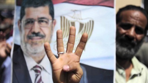 Για πρώτη φορά, ο συγκεκριμένος χαιρετισμός χρησιμοποιήθηκε στο Κάιρο το 2013 από οπαδούς της Μουσουλμανικής Αδελφότητας και υποστηρικτές του πρώην ισλαμιστή Αιγύπτιου προέδρου Μοχάμεντ Μόρσι στην πλατεία Ραμπιάτουλ Αντεβιγέ.