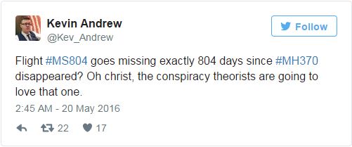 Η πτήση MS804 της EgyptAir είχε την τελευταία επικοινωνία στις 02:30 το πρωί στις 19 Μαΐου 2016. Από τα δύο συμβάντα μεσολαβούν ακριβώς 804 ημέρες.