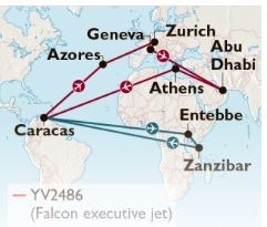 Το δημοσίευμα συνοδεύει και γράφημα όπου απεικονίζονται όλες οι στάσεις του κρατικού αεροσκάφους του Μαδούρο και αναφέρεται ότι πρόκειται για πολύ σημαντικά σημεία για το παγκόσμιο εμπόριο χρυσού. Εκεί φαίνεται ότι το Άμπου Ντάμπι , το αεροσκάφος προσγειώθηκε στην Αθήνα.Μάλιστα αναφέρεται ότι η συγκεκριμένη στάση δεν είναι τυχαία, όπως εκτιμούν οι ελληνικές Αρχές και η πρεσβεία της Βενεζουέλας.