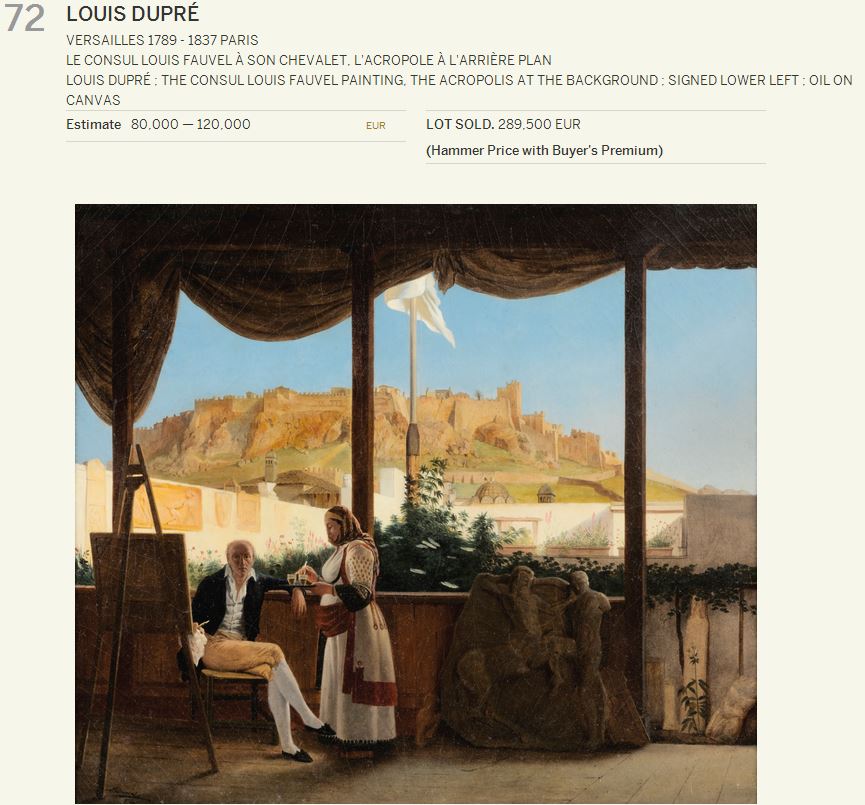 Το πορτρέτο του Γάλλου Πρόξενου, Louis Fauvel, από τον Louis Dupré αντανακλά το ενδιαφέρον της Γαλλίας προς την Ελλάδα στις αρχές του 19ου αιώνα – στην ιστορία της, την τέχνη της και τη σύγχρονη κατάσταση, δεδομένου ότι προσπαθούσε να απελευθερωθεί από την Οθωμανική Αυτοκρατορία.