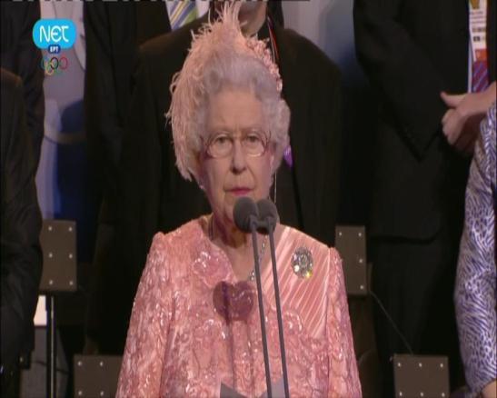 Το πρόσωπο, ωστόσο, που έκλεψε την παράσταση ήταν η βασίλισσα Ελισάβετ. Το 2012 σημαδεύτηκε για εκείνη από δύο γεγονότα, το αδαμάντινο ιωβηλαίο των 60 χρόνων μοναρχίας της αλλά και από το γεγονός ότι είναι πλέον ο μόνος ανώτατος πολιτειακός άρχοντας που έχει κηρύξει δύο φορές την έναρξη Ολυμπιακών Αγώνων, μια φορά το 1976 στο Μόντρεαλ και άλλη μια στο Λονδίνο το 2012.