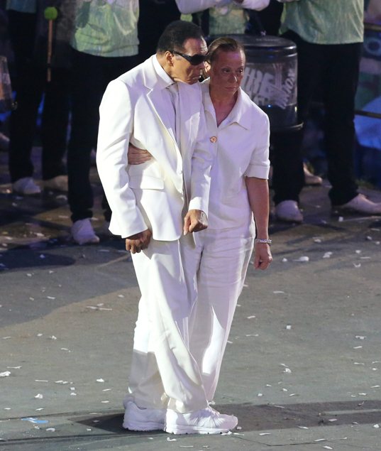 Έκπληξη επιφύλαξαν οι διοργανωτές και για τα άτομα που μετέφεραν στο Στάδιο την Ολυμπιακή σημαία, την οποία κράτησαν στα χέρια τους διεθνείς προσωπικότητες, μεταξύ αυτών ο γ.γ. του ΟΗΕ Μπαν κι Μουν και ο θρύλος της πυγμαχίας Μοχάμεντ Άλι.