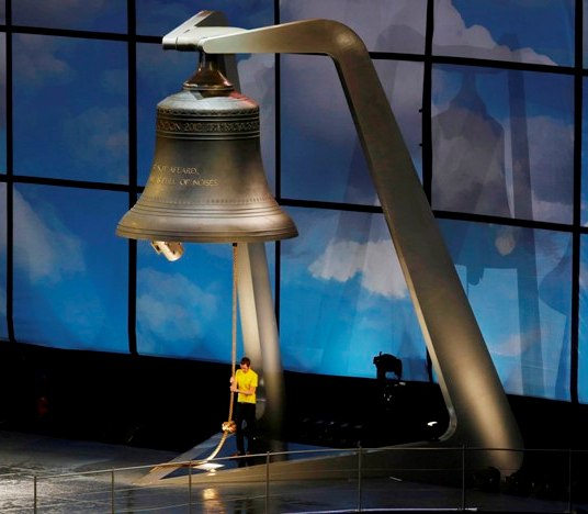 Η φαντασμαγορική τελετή ξεκίνησε στις 11 το βράδυ ώρα Ελλάδας, με τον νικητή του φετινού ποδηλατικού Γύρου Γαλλίας, Μπράντλεϊ Γουίγκινς να χτυπά τη γιγαντιαία καμπάνα που δημιουργήθηκε ειδικά για την περίσταση, δίνοντας το σύνθημα για την έναρξη της τελετής.
