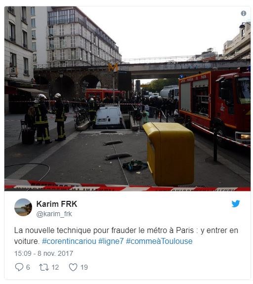 Ένας οδηγός στο Παρίσι, έχοντας ξεχάσει να βάλει το χειρόφρενο στο όχημα του, είδε το αυτοκίνητο του να κατευθύνεται στην είσοδο του μετρό και να κατεβαίνει τα σκαλιά που οδηγούν στην αποβάθρα.