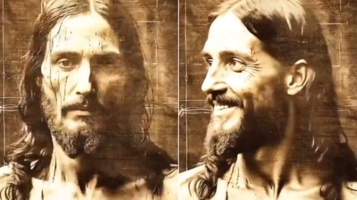 Χρησιμοποιώντας φωτογραφίες από την Ιερά Σινδόνη του Τορίνο -το αρχαίο ύφασμα που πολλοί Χριστιανοί πιστεύουν πως τύλιξε το ακρωτηριασμένο σώμα του Ιησού μετά τη σταύρωση-, δημιουργήθηκε μέσω της AI γεννήτριας εικόνων Midjourney, οδηγώντας σε ένα οπτικό αποτέλεσμα που δείχνει τον Χριστό να ανοιγοκλείνει τα μάτια και να χαμογελά, όπως ίσως έκανε πριν από τη σταύρωσή του το 33 μ.Χ.