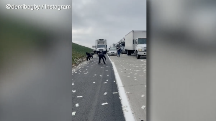 Βίντεο που αναρτήθηκαν σε μέσα κοινωνικής δικτύωσης δείχνουν οδηγούς να σταματούν τα οχήματά τους στην μέση του δρόμου και στη λωρίδα έκτακτης ανάγκης και να κατεβαίνουν τρέχοντας να μαζέψουν με τις χούφτες δολάρια. Κάποιοι τα πετάξαν στον αέρα σαν κομφετί.