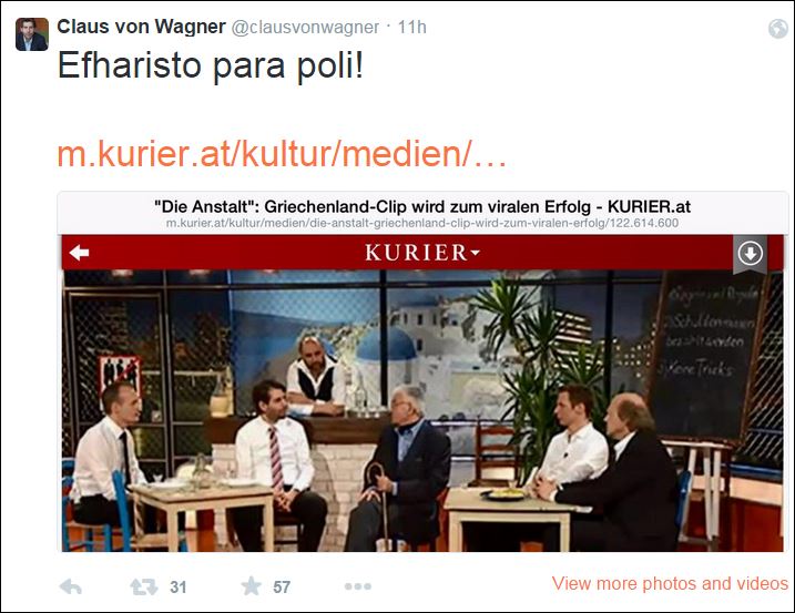 Αυτά τα νούμερα έκαναν τον Γερμανό δημοσιογράφο και εκ των δημιουργών του βίντεο Claus von Wagner να γράψει στο twitter «Efharisto para poli!».