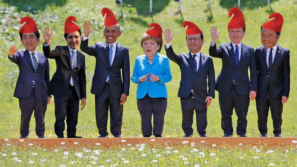 Στο σχετικό δημοσίευμα η Γερμανίδα Καγκελάριος, Άνγκελα Μέρκελ, ο πρόεδρος των ΗΠΑ, Μπαράκ Ομπάμα, ο Γάλλος πρόεδρος Φρανσουά Ολάντ και οι υπόλοιποι ηγέτες των επτά ισχυρότερων χωρών του πλανήτη (G7) απεικονίζονται ως νάνοι.