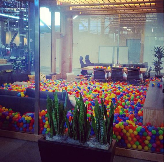 Το κτίριο είναι ένας τεράστιος ενιαίος εργασιακός χώρος όπου χιλιάδες άνθρωποι μπορούν να εργάζονται ταυτόχρονα ενώ παράλληλα υπάρχουν μικρότεροι χώροι για όσους θέλουν ιδιωτικότητα. Υπάρχει αίθουσα συνεδριάσεων η οποία είναι γεμάτη με μικρές μπάλες, που υποθέτουμε ότι ήταν έτσι μόνο για την περίσταση.