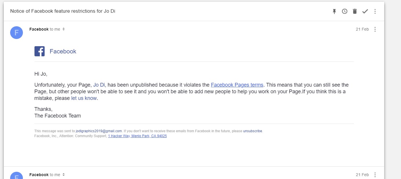 “Δύο ημέρες μετά το e-mail του Twitter για την ανάρτηση σχετικά με τον Ερντογάν, με ένα νέο e-mail το Facebook, αυτή τη φορά, με ενημέρωσε πως προχώρησε στο κλείσιμο της σελίδας Jo Di – η λειτουργία της οποίας ξεκίνησε τον Ιούνη του 2015 (στη δεύτερη φάση του). Τρία χρόνια μετά και χωρίς δεύτερη εξήγηση, ήρθε ο πλήρης αποκλεισμός πρόσβασης και οποιαδήποτε άλλη επικοινωνία ή επεξεργασία της σελίδας.