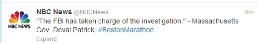 «ΤοFBI αναλαμβάνει την έρευνα» ανέφερε ο κυβερνήτης της Μασαχουσέτης, Ντεβάλ Πάτρικ, όπως μετέδωσε το NBC news και το Reuters.