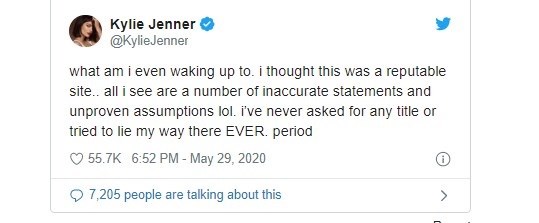 Το Forbes ισχυρίζεται ότι η οικογένεια “πήγε εξαιρετικά μακριά” για να καταφέρει να παρουσιάσει το νεότερο μέλος της πλουσιότερο από ότι ήταν στην πραγματικότητα. Η 22χρονη με αναρτήσεις της στο Twitter αρνήθηκε τα όσα αναφέρει το περιοδικό ως “υποθέσεις χωρίς αποδείξεις και ανακρίβειες”.
