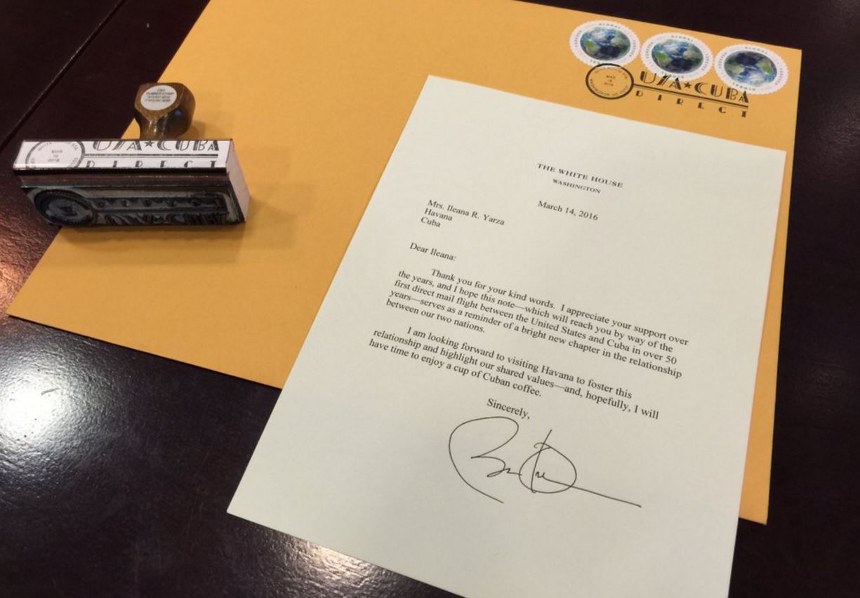 Μόλις έγινε γνωστό ότι ο Ομπάμα θα ταξιδέψει στην Αβάνα, η 76χρονη Κουβανή, Ileana, του έστειλε γράμμα, λέγοντάς του πόσο ενθουσιασμένη είναι για την επίσκεψή του. Του επεσήμανε πόσο σημαντική είναι η επίσκεψή του για την άρση του εμπάργκο, του είπε ότι τον θαυμάζει και αποκάλυψε ότι πάντα τον στήριζε. Μάλιστα τον κάλεσε στο σπίτι της για να τον κεράσει καφέ.