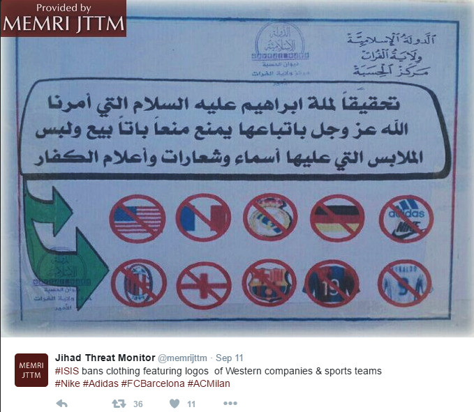 Ταυτόχρονα, οι Τζιχαντιστές έχουν βάλει στη μαύρη λίστα, γενικότερα τα προιόντα των εταιρειών Adidas και Nike.