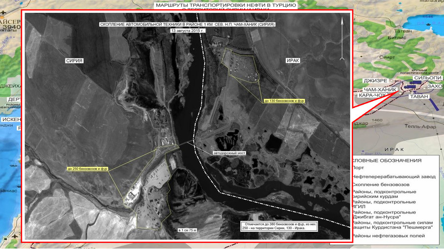 Η ηγεσία της Τουρκίας, συμπεριλαμβανομένου του Προέδρου Ερντογάν και της οικογένειάς του, συμμετέχουν σε παράνομο εμπόριο πετρελαίου με το Ισλαμικό Κράτος, υποστηρίζει το ρωσικό υπουργείο Άμυνας, τονίζοντας ότι η Τουρκία είναι ο τελικός προορισμός για το λαθραίο πετρέλαιο από τη Συρία και το Ιράκ.