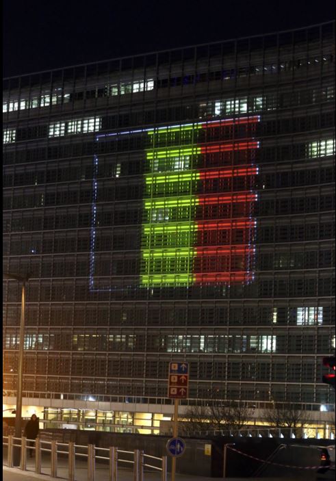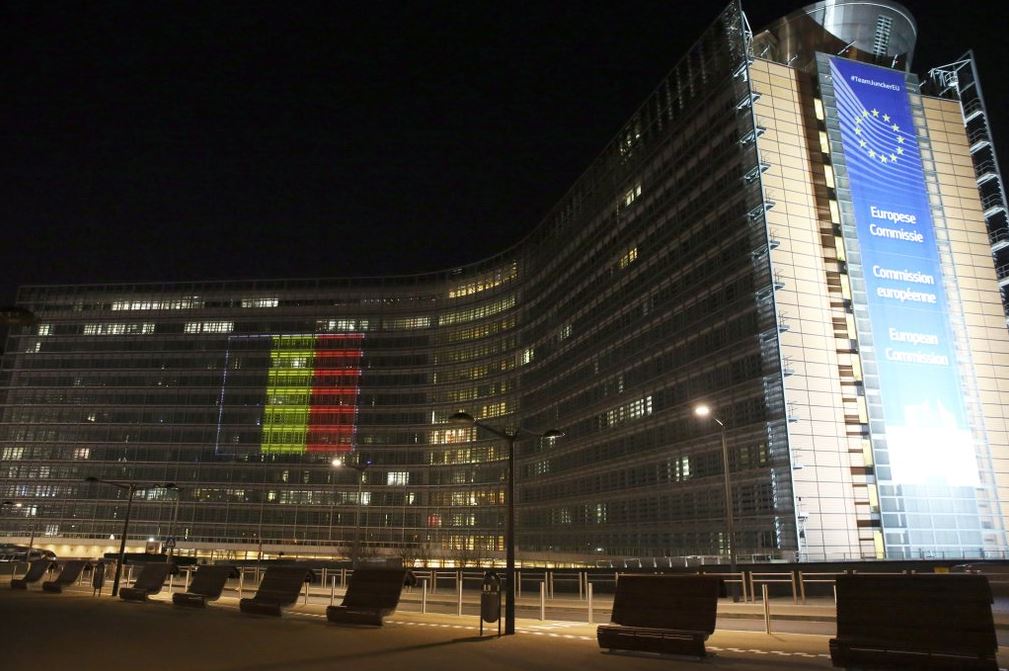 Στα χρώματα της σημαίας του Βελγίου φωταγωγήθηκε το κτίριο της Κομισιόν, ως ένδειξη συμπαράστασης στα θύματα των τρομοκρατικών επιθέσεων στις Βρυξέλλες.