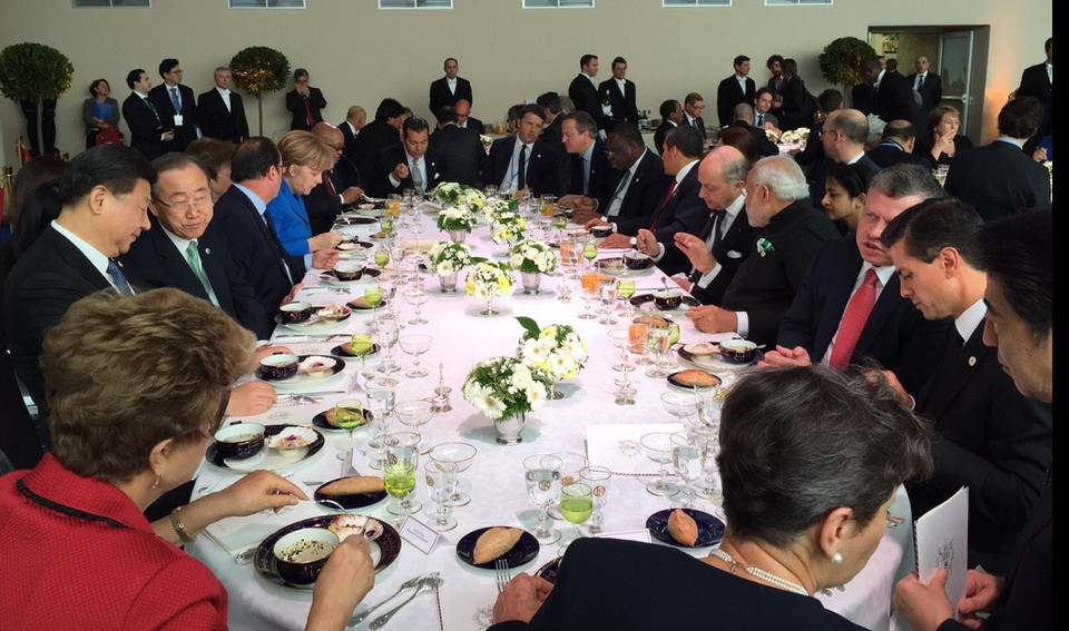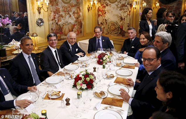 Το Παρίσι υποδέχθηκε χθες περίπου 150 ηγέτες για τη Διάσκεψη για το Κλίμα. Μετά το τέλος των εργασιών όλοι οι ηγέτες δείπνησαν μαζί, αλλά ο Φρανσουά Ολάντ επεφύλαξε μία έκπληξη στον Μπαράκ Ομπάμα.