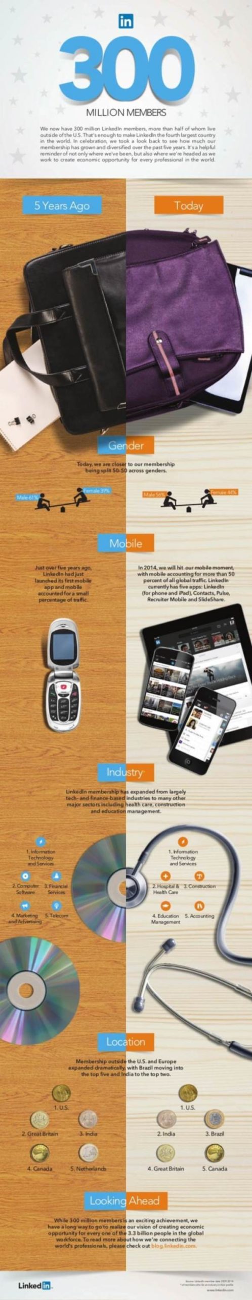Το «επαγγελματικό» κοινωνικό δίκτυο LinkedIn ανακοίνωσε ότι ξεπέρασε τους 300 εκατ. χρήστες παγκοσμίως, επιβεβαιώνοντας για ακόμα μια φορά την ανοδική πορεία του αλλά και την εξάπλωση του σε όλο τον κόσμο, μιας και τα 2/3 των χρηστών προέρχονται από χώρες εκτός των ΗΠΑ.