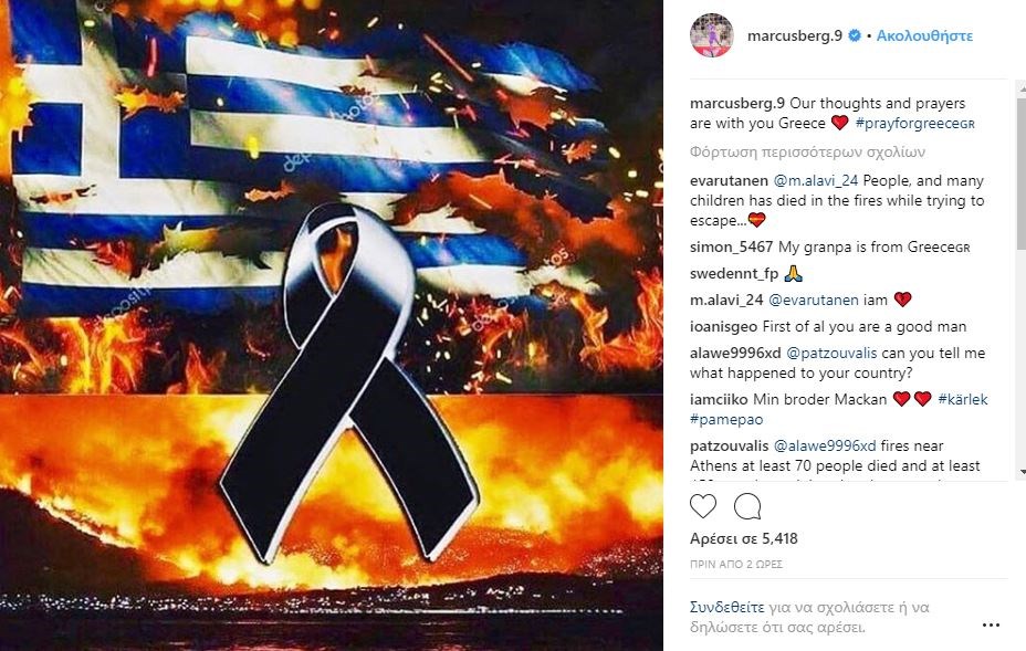 Τη δική του στήριξη στην Ελλάδα για τις φονικές πυρκαγιές που αντιμετωπίζει εξέφρασε ο Μάρκους Μπεργκ.