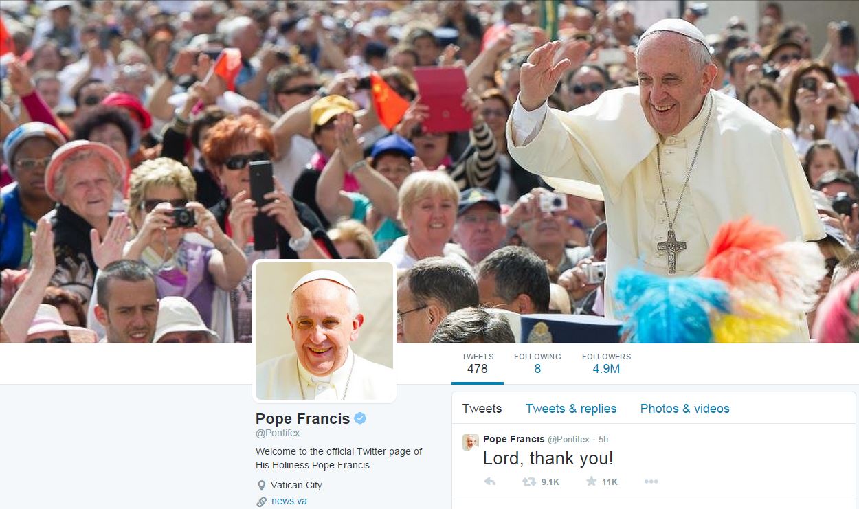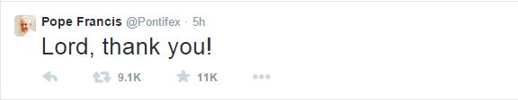Ο προκαθήμενος της Ρωμαιοκαθολικής Εκκλησίας, μέσω Twitter, αποχαιρέτησε το 2014 γράφοντας: «Κύριε, σε ευχαριστώ!».