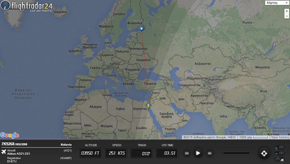 Σύμφωνα με το γράφημα της ιστοσελίδας flightradar24.com το αεροσκάφος της εταιρείας Metrojet Kogalymavia απογειώθηκε από το αεροδρόμιο της πόλης Σαρμ αλ Σέιχ και μετά από 21 λεπτά βρισκόταν στα 33.500 πόδια με ταχύτητα 404 κόμβων.
