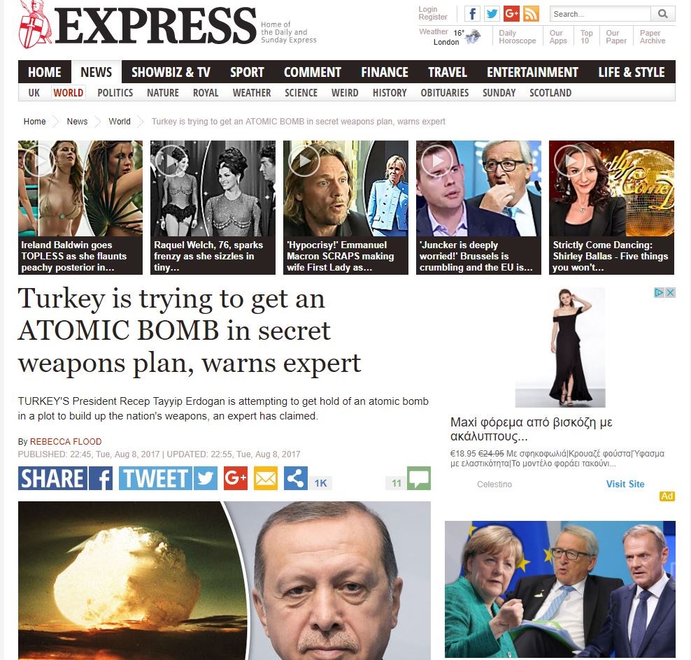 Σύμφωνα με βρετανικό δημοσίευμα της Express, ο Τούρκος Πρόεδρος Ρετζέπ Ταγίπ Εντογάν ήδη έχει ένα μυστικό σχέδιο για την απόκτηση ατομικής βόμβας, τη στιγμή που οι σχέσεις του με την ΕΕ βρίσκονται σε κρίση.