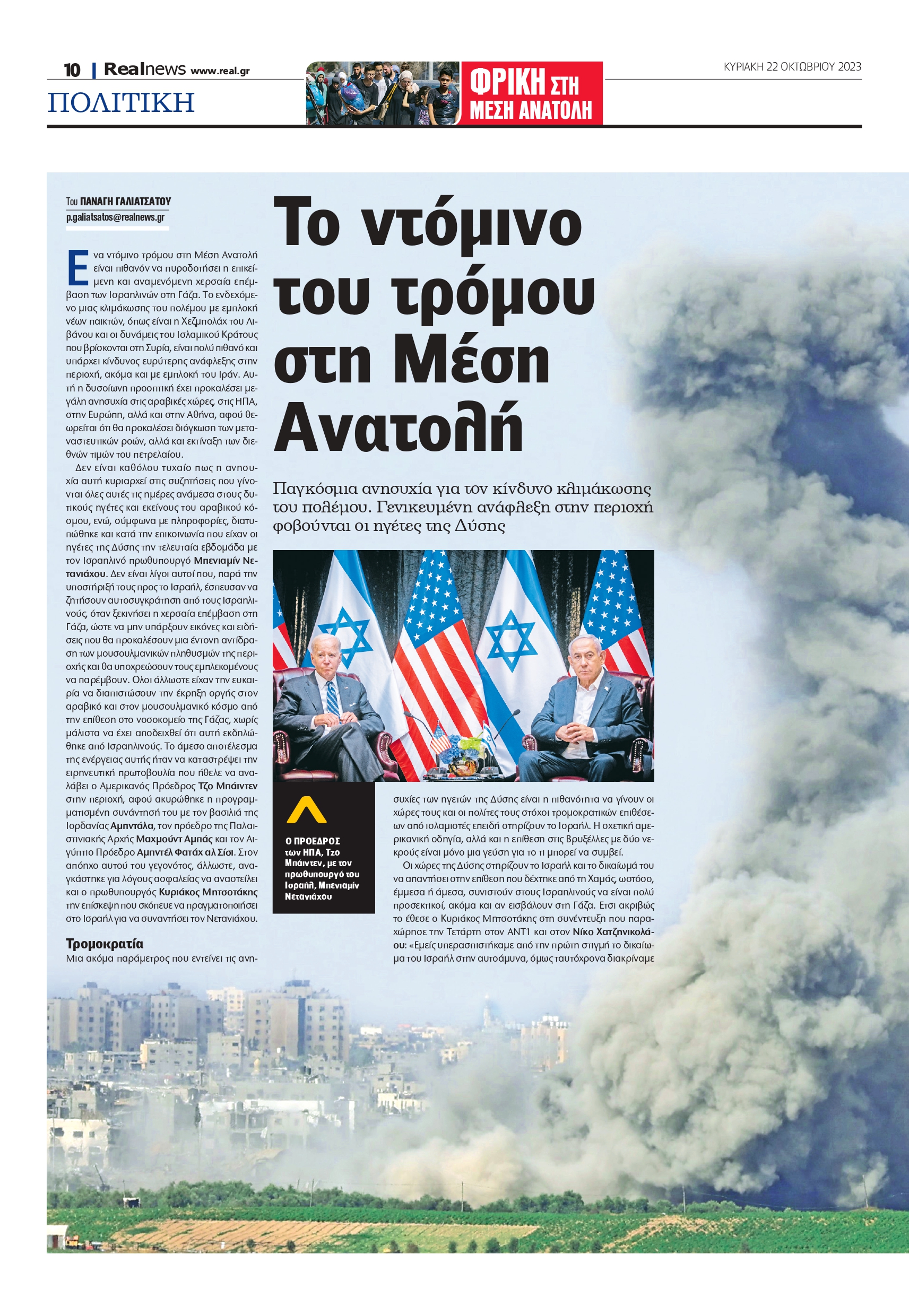 Ένα ντόμινο τρόμου στη Μέση Ανατολή είναι πιθανόν να πυροδοτήσει η επικείμενη και αναμενόμενη χερσαία επέμβαση των Ισραηλινών στη Γάζα. Το ενδεχόμενο μιας κλιμάκωσης του πολέμου με εμπλοκή νέων παικτών, όπως είναι η Χεζμπολάχ του Λιβάνου και οι δυνάμεις του Ισλαμικού Κράτους που βρίσκονται στη Συρία, είναι πολύ πιθανό και υπάρχει κίνδυνος ευρύτερης ανάφλεξης στην περιοχή, ακόμα και με εμπλοκή του Ιράν. Αυτή η δυσοίωνη προοπτική έχει προκαλέσει μεγάλη ανησυχία στις αραβικές χώρες, στις ΗΠΑ, στην Ευρώπη, αλλά και στην Αθήνα, αφού θεωρείται ότι θα προκαλέσει διόγκωση των μεταναστευτικών ροών, αλλά και εκτίναξη των διεθνών τιμών του πετρελαίου.