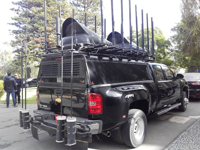 Επρόκειτο για ένα αμερικανικής κατασκευής όχημα “jammer”, προς αντιμετώπιση ασύμμετρων και τρομοκρατικών απειλών, το οποίο μεταξύ άλλων μπλόκαρε για κάποια δευτερόλεπτα και τις συνδέσεις αρκετών καναλιών που κάλυπταν την τριμερή Σύνοδο Κορυφής, όταν αφιχθεί στο Προεδρικό Μέγαρο ο Πρόεδρος Σίσι