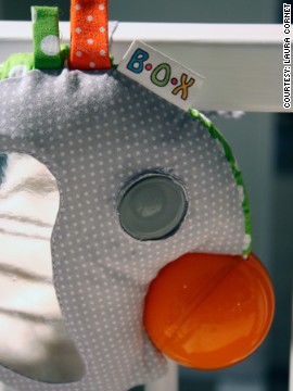 Έφτιαξε λοιπόν ένα κινητό, με μαλακά παιχνίδια που έχουν το σχήμα του λογότυπου του Facebook και του πουλιού-σήματος κατατεθέν του Twitter. Η συσκευή κρέμεται από την κούνια και όταν το μωρό την αγγίξει βγάζει φωτογραφία ή βίντεο και την ανεβάζει αυτόματα στα μέσα κοινωνικής δι��τύωσης.