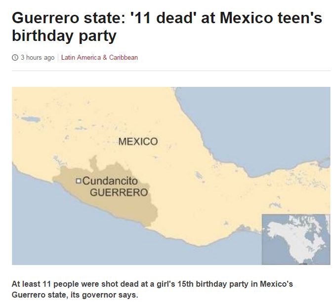 «Υπήρξε ένα πρόβλημα κατά τη διάρκεια της γιορτής για τα γενέθλια μιας 15χρονης και σύμφωνα με τις πληροφορίες που έχουμε, σκοτώθηκαν 11 άνθρωποι», δήλωσε ο κυβερνήτης της Γκερέρο Έκτορ Αστουδίγιο και συνέχισε: «Το Σάββατο όσες περίπολοι προσπάθησαν να φτάσουν στην περιοχή έγιναν δεκτοί με πυροβολισμούς». Για το περιστατικό αυτό ξεκίνησε έρευνα.
