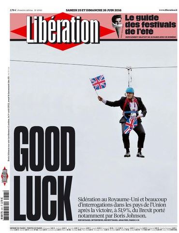 «Σοκ στο Ηνωμένο Βασίλειο και πολλές ερωτήσεις ανάμεσα στα άλλα κράτη της Ευρωπαϊκής Ένωσης μετά τη νίκη του Μπόρις Τζόνσον στο Brexit», αναφέρει χαρακτηριστικά στο πρωτοσέλιδο της η γαλλική εφημερίδα, που έχει τίτλο: «Καλή τύχη» στα αγγλικά.
