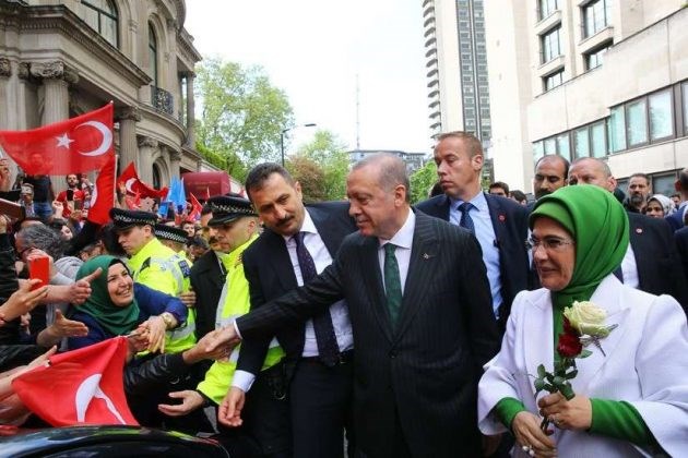 Η επίσκεψη στη Βρετανία πραγματοποιείται λίγες μόλις εβδομάδες πριν από τις πρόωρες προεδρικές και βουλευτικές εκλογές της 24ης Ιουνίου στην Τουρκία.