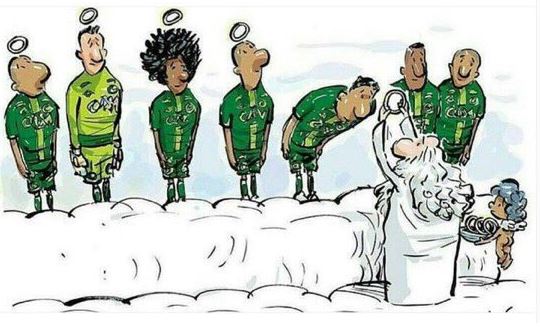 Ένα σκίτσο που δείχνει τους παίκτες της Σαπεκοένσε, οι οποίοι έχασαν τη ζωή τους στο χθεσινό αεροπορικό δυστύχημα, στον παράδεισο να φορούν τα χρυσά μετάλλια για την κατάκτηση του Κόπα Σουνταμερικάνα κάνει τον γύρο του διαδικτύου στα μέσα κοινωνικής δικτύωσης.