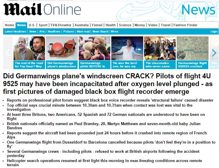 Η νέα θεωρία για το σπασμένο τζάμι συζητήθηκε, σύμφωνα με το δημοσίευμα, την Τετάρτη στο διαδικτυακό φόρουμ Επαγγελματιών Πιλότων αεροπόρων (PPRuNe), έπειτα από μια ανώνυμη αναφορά ότι κατέστη εφικτό να ληφθούν τα δεδομένα από το πρώτο μαύρο κουτί του αεροπλάνου.