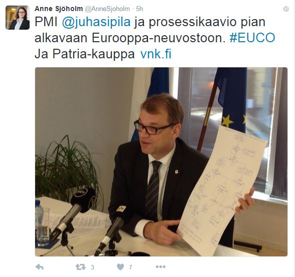 Ο Πρωθυπουργός της Φινλανδίας, Γιούχα Σίπιλα έφτιαξε ένα σχεδιάγραμμα με το σχέδιο της συμφωνίας μεταξύ ΕΕ και Τουρκίας.