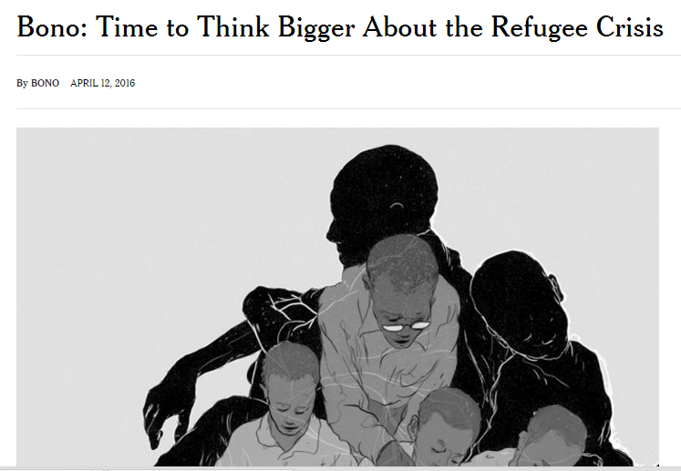 Ο τραγουδιστής των U2, Bono παρουσίασε ένα σχέδιο τριών σημείων για την αντιμετώπιση της προσφυγικής κρίσης, σε άρθρο του στους New York Times.