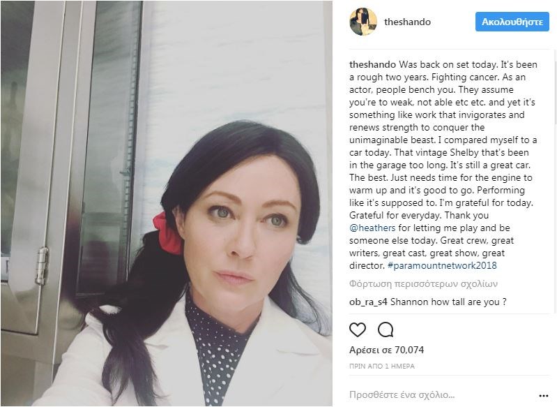 «Σήμερα επέστρεψα στα γυρίσματα. Ήταν δύο σκληρά χρόνια παλεύοντας με τον καρκίνο. Ο κόσμος σε κρίνει ως ηθοποιό. Υποθέτει ότι είσαι αδύναμος, όχι ικανός, κλπ. Κι όμως, και πάλι η δουλειά είναι που σε αναζωογονεί και ανανεώνει τις δυνάμεις σου για να κατακτήσεις αυτό το αδιανόητο κτήνος. Σήμερα συγκρίνω τον εαυτό μου με ένα αυτοκίνητο. Αυτό το vintage Shelby που ήταν στο γκαράζ για πολύ καιρό. Και είναι ακόμη ένα σπουδαίο αυτοκίνητο. Το καλύτερο. Απλώς χρειάζεται τον χρόνο του για να πάρει μπροστά η μηχανή και να δουλέψει, όπως υποτίθεται ότι θα έπρεπε. Σήμερα είμαι ευγνώμων. Ευγνώμων για κάθε ημέρα. Ευχαριστώ τους ανθρώπους της σειράς που μου επέτρεψαν να παίξω και σήμερα να υποδυθώ κάποια άλλη. Υπέροχοι συνεργάτες, σεναριογράφοι, καστ, υπέροχη τηλεοπτική σειρά και σκηνοθέτης».Δείτε την ανάρτηση: