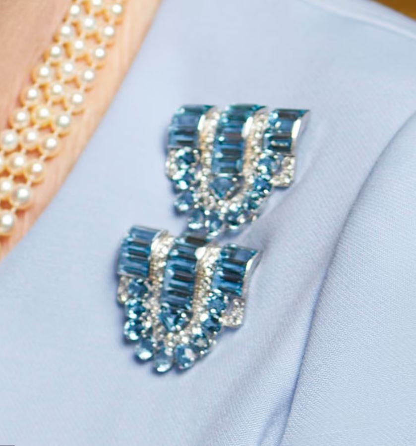 Οι καρφίτσες, φορεμένες χωριστά, η μία πάνω από την άλλη, ήταν ένα δώρο για τα 18α γενέθλιά της από τον αγαπημένο της πατέρα, George VI, τον Απρίλιο του 1944.