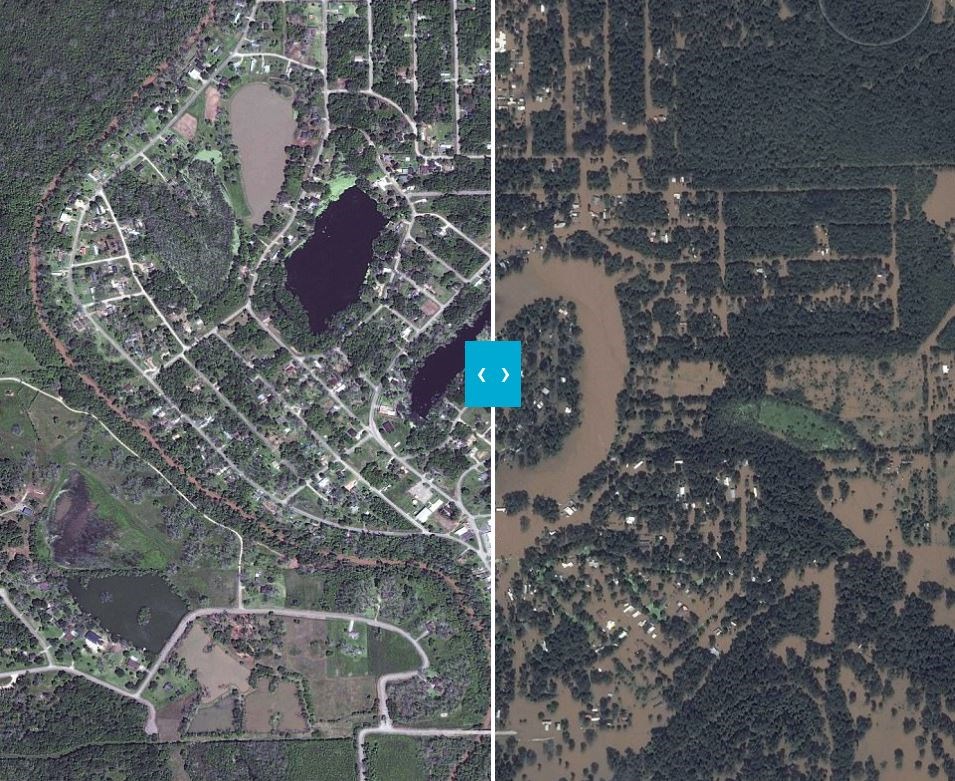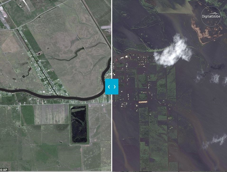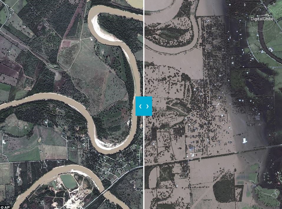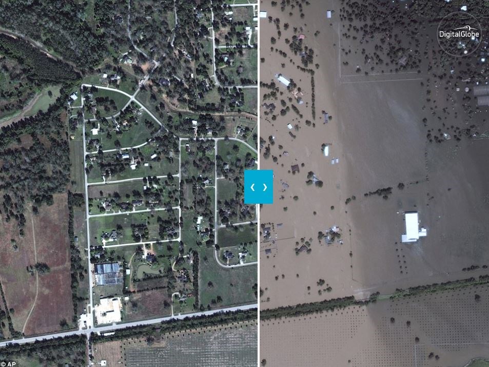 Φωτογραφίες από τον δορυφόρο της εταιρείας DigitalGlobe δείχνουν την καταστροφή που έχει υποστεί το Τέξας, παραθέτοντας εικόνες πριν και μετά το πέρασμα της τροπικής καταιγίδας.