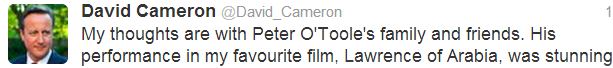 Το tweet του Κάμερον για τον Πίτερ Ο’ Τουλ