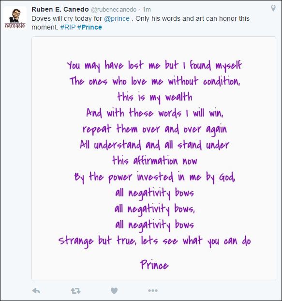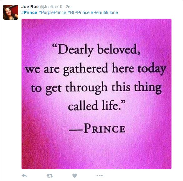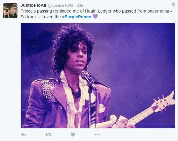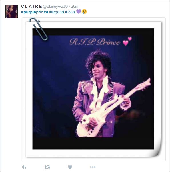 Η ανακοίνωση του θανάτου του Prince είχε ως αποτέλεσμα να κατακλυστεί το Twitter με εκατομμύρια μηνύματα από τους χρήστες του μέσου κοινωνικής δικτύωσης.