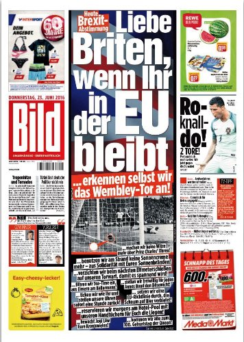 Η γερμανική Bild δηλώνει έτοιμη να αναγνωρίσει το γκολ του Τζεφ Χερστ, που αμφισβητείται από τον τελικό του Γουέμπλεϊ στο Μουντιάλ του 1966 ανάμεσα στην Αγγλία και τη Δυτική Γερμανία, σε περίπτωση που η Μεγάλη Βρετανία παραμείνει στην Ευρώπη.