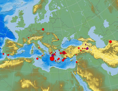Έτσι παρουσιάζει το Ευρωμεσογειακό Σεισμολογικό Κέντρο την σεισμική δραστηριότητα στην Ευρώπη σε real time.